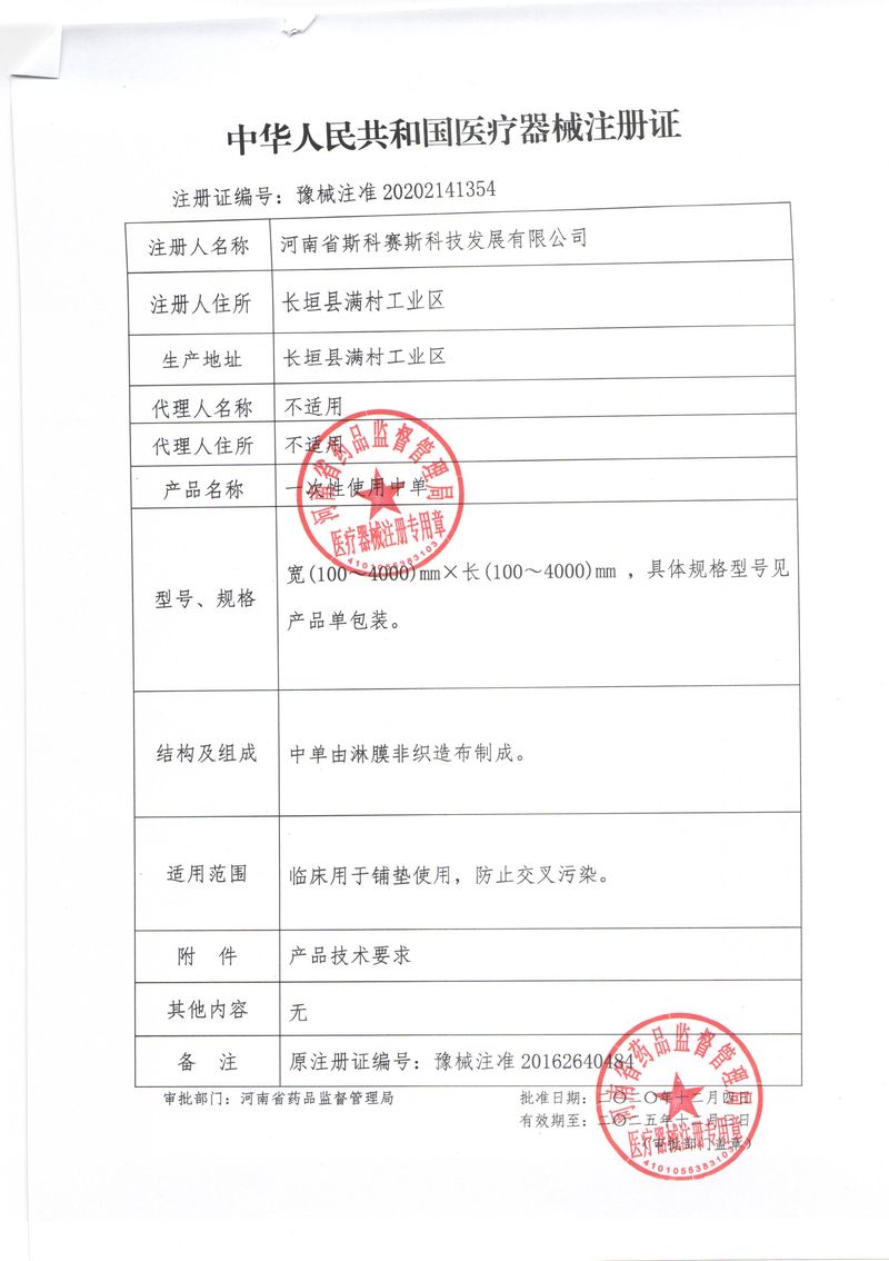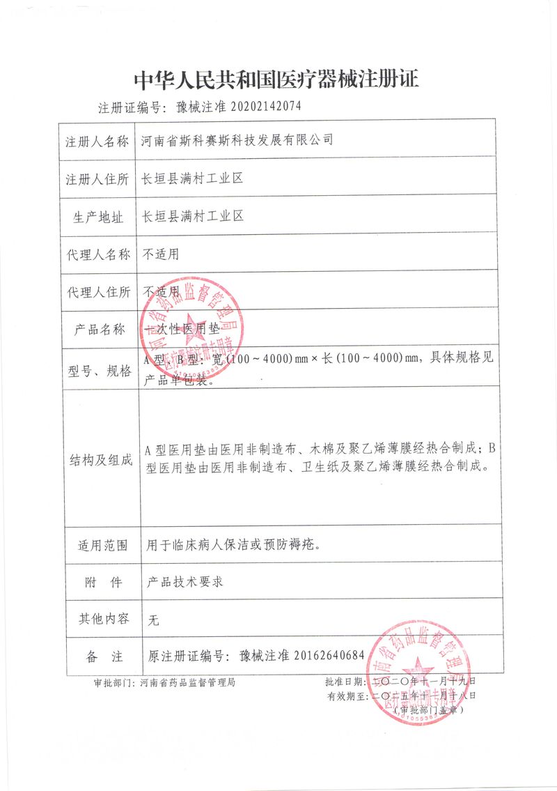 河南省斯科賽斯科技發(fā)展有限公司創(chuàng)建于 2011 年,位于“中國醫(yī)療耗材之都”- 河南省長垣縣,西臨 308 省道,南靠新菏鐵路,北依長濟(jì)高速,交通便捷,經(jīng)濟(jì)發(fā)達(dá),環(huán)境優(yōu)美。斯科賽斯積極進(jìn)入醫(yī)療健康和服務(wù)領(lǐng)域,秉承為用戶創(chuàng)造價值的理念,專注于醫(yī)用耗材解決方案的研發(fā)和運營,并為用戶提供完善的產(chǎn)品解決方案;  斯科賽斯主要生產(chǎn)醫(yī)用麻醉系列、醫(yī)用高分子系列、醫(yī)用敷料包系列、醫(yī)用無紡布系列、醫(yī)用防護(hù)系列、醫(yī)用脫脂棉系列、生物材料制品類等七大類、100 多個品種、400 多個規(guī)格的產(chǎn)品。公司占地面積約 30000 平方米,建筑面積20000 平方米,擁有 10 萬級的凈化車間總面積 10000 平方米。擁有國際先進(jìn)水平的生產(chǎn)設(shè)備和檢測儀器,技術(shù)裝備精良,檢測手段完善,為醫(yī)療行業(yè)的不斷發(fā)展進(jìn)步提供保障。公司順利通過 ISO9001、ISO13485 質(zhì)量管理體系認(rèn)證。  斯科賽斯堅持研發(fā)高科技新產(chǎn)品,力爭在醫(yī)療器械關(guān)鍵領(lǐng)域取得技術(shù)和研發(fā)的重大突破;立足國內(nèi)和國際兩個市場,逐步實現(xiàn)管理理念、經(jīng)營機制、人力資源、技術(shù)、產(chǎn)品、市場等全方位對接,提高企業(yè)的核心競爭力;過去的歲月里,斯科賽斯砥礪前行,誠信務(wù)實,銳意進(jìn)取,不斷創(chuàng)新,用自己的睿智和辛勞,以富有責(zé)任感的使命,在探索中追求,在追求中超越,致力于成為值得信賴的醫(yī)療用品生產(chǎn)企業(yè)!在未來的日子里,斯科賽斯將一如既往豪情滿懷,信心百倍,攜手并肩,執(zhí)著追求,向更高的的目標(biāo)前進(jìn),鑄造新的輝煌!